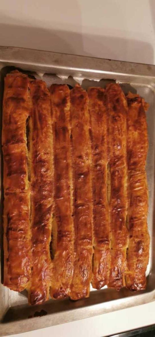 Pomešajte u posudi sir, jogurt, jaja i ulje. Uzeti dve kore i drugu koru malo poprskajte uljem. Zatim preko kora staviti otprilike četiri kašike fila, pa urolati i saviti krajeve da ne iscuri. Tako radite dok ne utrošite sav materijal. Ostavite malo fila da možete da premažete pite. Stavite u podmazan pleh i svaku pitu premažite sa malo fila. Pecite na 180°C nekih pola sata, a onda na 190°C još nekih 5-10 minuta.