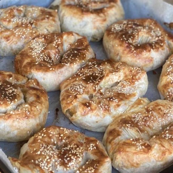 Praziluk i pečurke propržite na malo ulja. Začinite po ukusu. Dok se to hladi, umutite jaja i dodajte pavlaku. Sve sjedinite. Kore namažite sa premazom, na drugu koru stavite fil, pa uvijte u krug. Ponavljajte proces dok imate materijala. Pužiće premažite jednim žumancem u koje ste dodali malo pavlake. Pospite susamom. Pecite na 200°C 25-30 minuta.