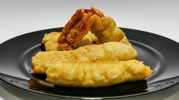 Skuvajte krompir u ljusci. Dok se krompir kuva, u posudi pomešajte kvasac, toplo mleko, kašičicu šećera, kašičicu brašna i ostavite na toplom da kvasac nadođe. Pomešajte kvasac i skuvani krompir, dodajte žumanca, mleko. Sipajte brašno, pa mesite prvo varjačom, pa rukama. Ostavite testo 30 minuta, a zatim premesite. Isecite testo na pravugaonike i napravite fil od majoneza kečapa i origana. Dodajte šunku i kačkavalj, urolujte i isecite na pola. Pržite na laganoj vatri dok ne porumene.