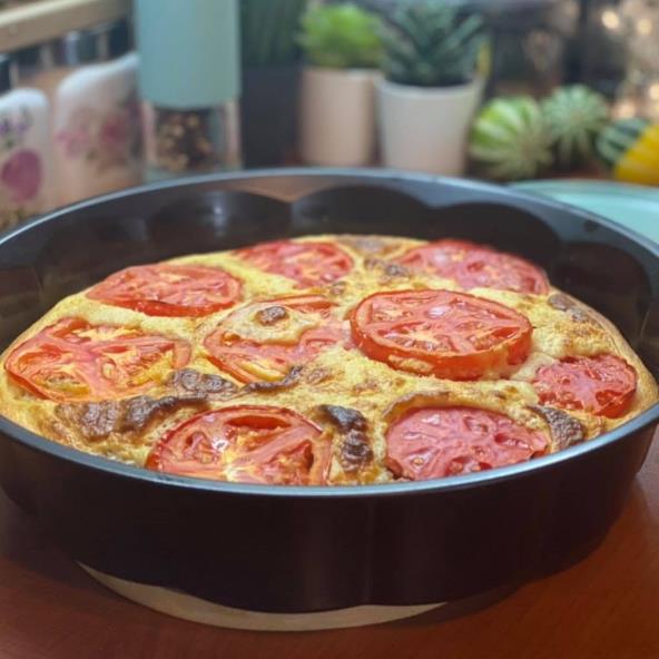 Priprema: Začinite meso po ukusu, pa napravite kuglice. Sastojke za testo sjedinite, 1/3 smese sipajte po dnu podmazane posude. Zatim poređajte kuglice od mesa, pa prelijte ostatkom smese. Pecite desetak minuta, pa odozgo stavite kolutove paradajza. Nastavite pečenje još 15-20 minuta na 180°C.