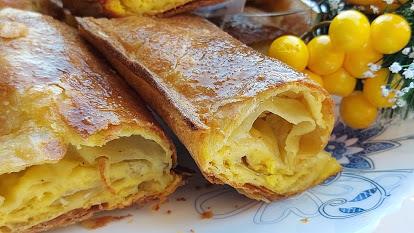 Savijte ivice i stavite u pleh obložen pek papirom. Malo pavlake razmutite, dodajte jaje i malo ulja, pa time premažite kore. Pecite na 200°C oko 50 min.