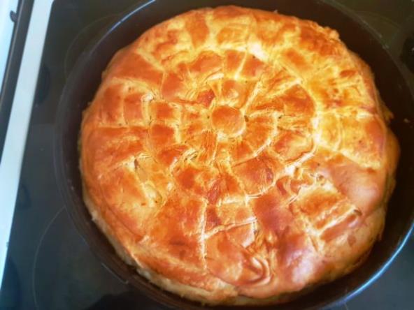 U toplu vodu dodajte kvasac i malo šećera. Promešajte i ostavite par minuta. Sjedinite brašno i so i ulje. Promešajte, zatim testo izradite rukama. Testo stavite na pobrašnjenu radnu površinu, razvucite ga i stavljajte preko parčiće maragarina. pola pripremljenog margarina ostavite za sledeći sloj. Preklopite ivice, zatim preklopite još jednom pa razvucite oklagijom. Stavite drugu polovinu margarina i ponovo preklopite na oblik pravougaonika. Zatim ponovo razvucite ali ovog puta veoma tanko.