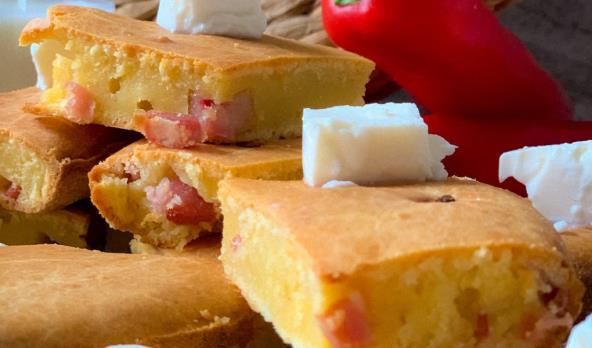 Odmah uključite rernu da se greje na 200°C. U činiji umutite jaja, so, ulje, mleko. Dodajte prosejano brašno i prašak za pecivo. Sastojke sjedinite i dodajte sitno seckanu slaninu. Okruglu tepsiju prečnika 24 cm podmažite sa uljem i pospite brašnom, pa izlijete umućenu smesu.