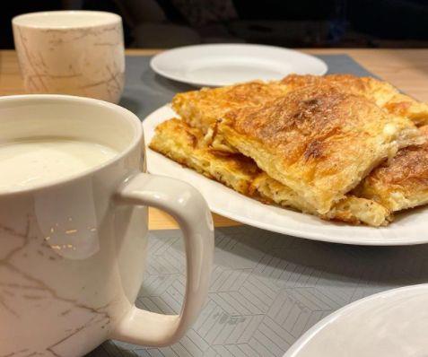 3. U činiji umutite jaja, dodajte im pavlaku, sjedinite, pa dodajte mleko. Ako vam sir nije slan ovde dodajte soli.