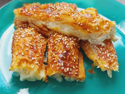 Prelijte pitu i pospite susamom. Pecite na 200 stepeni oko 50 min da dobro porumeni.