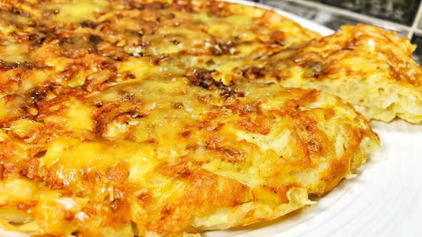 Iseckajte kupus, pa mu dodajte seckani luk i posolite i pobiberite. Zatim umutite jaja i onda sipajte preko kupusa i luka, pa dodajte brašno i pomešajte. Sipajte smesu u malo nauljen tiganj i poklopite folijom i preko daskom za sečenje. Pecite nekih 15-20 minuta, pa okrenite uz pomoć tanjira. Pospite preko malo sira i pecite još kratko.