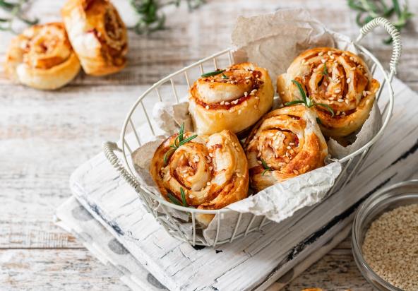 Lisnate rol pitice sa slaninom i kačkavaljem mogu da naprave i potpuni amateri u kuhinji. Sve što je potrebno jeste da odmrznuto testo razvijete oklagijom i preko naređate šunku, kačkavalj, ili bilo šta po vašoj želji, zarolate, isečete na male krugove i ispečete.