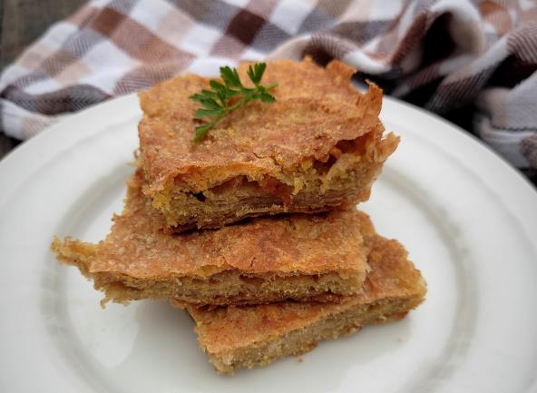 Od gotovih kora napravite zanimljivu pitu. Umesto da je punite sirom, spanaćem ili mesom probajte smesu od brašna i još par sastojaka. Ukus je odličan, a brza priprema je dodatni plus. Kada vam treba doručak ili večera ovo je rešenje, ali takođe i ako vam se gosti najave, pa želite da ih počastite nečim novim. Služite sa sirom ili kiselim mlekom.