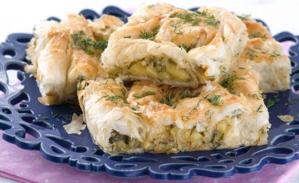 4. Pred kraj pečenja pite, dodati 1 kašičicu soli u 3 dl vode i staviti da provri. Pečenu pitu preliti ključalom vodom i ostaviti da odstoji desetak minuta da bi testo upilo tečnost.