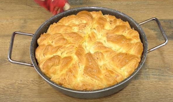 Podeliti testo na 4 dela. Svaki deo razvaljajte u okrugli oblik. Prvi deo premažite otopljenim puterom i pospite rendanim sirom. Stavite drugu i ponovo premažite puterom i pospite rendanim sirom. Postavljamo i treći deo i nastavljamo kao i ranije. Na kraju stavljamo četvrti deo. Nakon što složite sve delove jedan na drugi, isecite na trake širine 2 prsta. Uvijte ih i poređajte u pleh podmazan otopljenim puterom. Pokrijte tepsiju i ostavite hleb da naraste 20 minuta. Pecite u zagrejanoj rerni na 180 °C 45 minuta.
