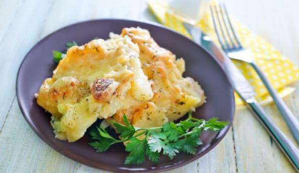 2. Pleh podmažite uljem i stavite nekoliko kora. Napravite fil od krompira, luka, ulja, bibera i soli.