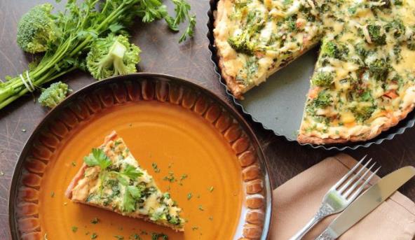 3. Pomešajte brokoli, šunku i sir. Sipajte u pripremljeno testo.