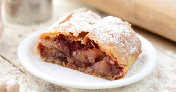 Presavijte testo tako da ga zatvorite i premažite mlekom. Pecite 20 minuta ili dok ne porumeni. Pospite šećerom u prahu i odmah servirajte. Možda ćete želeti da napravite i pita tortu sa višnjama koja se lako sprema.