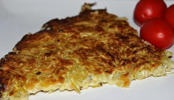 2. Posebno umutiti jaja sa jogurtom, vodom, brašnom i izmešati sa tikvicama, lukom i krompirom.