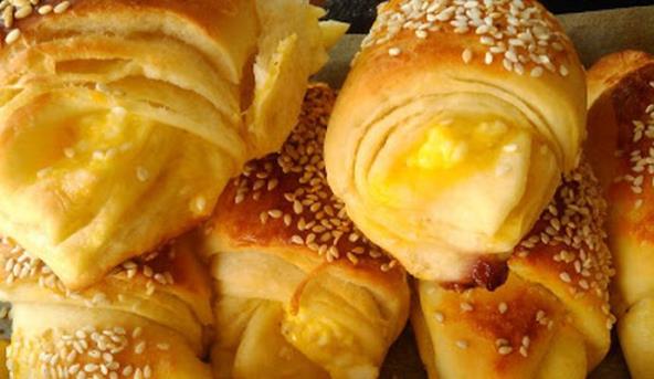 4. Tako uradite i sa ostatkom testa. Testo premažite jajetom i pospite susamom. Ostavite 15 min da malo narastu pa pecite u rerni na 200 stepeni 30 min...