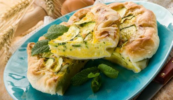 2. Za to vreme umutite jaja i ulje, a zatim im dodajte brašno i prašak za pecivo. Tikvice ocedite rukama da izađe sva voda pa ih dodajte u posudu s jajima. Blanširajte kratko blitvu ili spanać, dobro ocedite, izrežite i dodajte takođe u posudu. Svemu pridodajte i sir i so i dobro promešajte da se povežu svi sastojci.