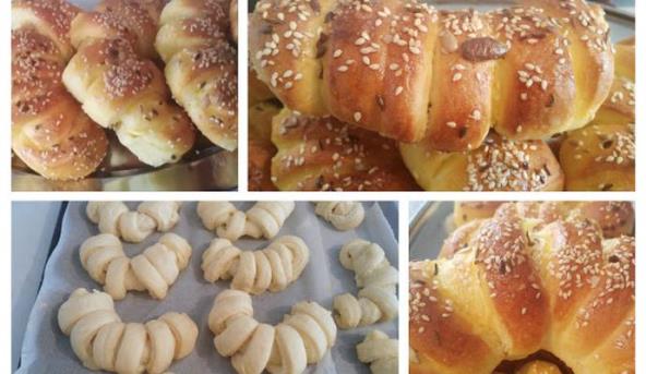 1. Kvasac rastvoriti u malo mleka i dodati šećer. Kad se istopi dodati 2 jaja i malo izmutiti žicom. Mleko smlačiti izmešati ga sa kiselim mlekom i dodati u kvasac, zatim ulje, brašno, so i prašak za pecivo. Sve dobro izmešati i dodavati brašno i umesiti srednje tvrdo testo. Testo staviti u činiju i pokriti, ostaviti da naraste na toplom.