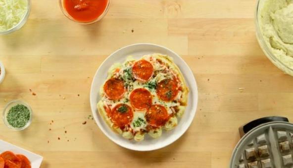 5. Kada se smesa ispeče i postane čvršća, otvorite aparat i počnite sa dekorisanjem vaše pice kečapom, mesom po želji i sirom.