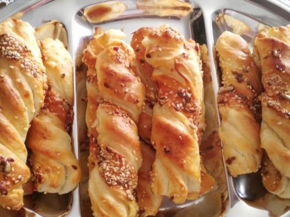 4.Secite na tanke trake širine 1 cm. Uvijajte i stavljajte u pleh koji ste obložili peh papirom.