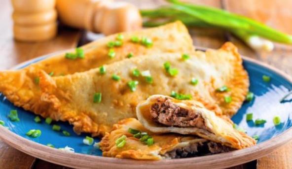 1. Kada ste pripremili testo i ostavili ga da se podigne, pripremite nadev. Sitno isecite luk i propržite ga na maslacu, dodajte meso, dobro ga propržite pa ga začinite po ukusu.