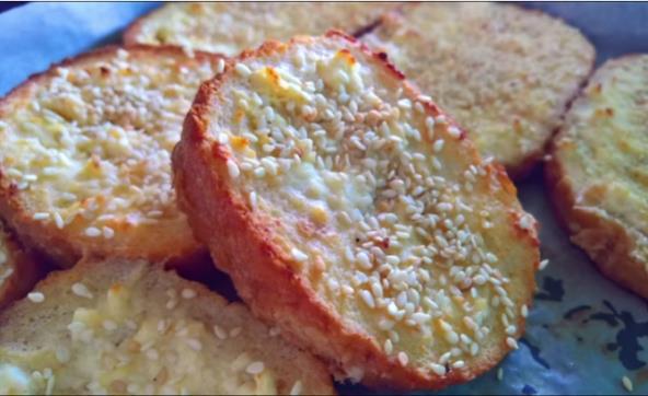 Umutite jaja, pa dodajte mleko i ulje i sjedinite. Zatim dodajte jogurt i sitan sir, posolite ako je sir neslan. Dobro promešajte. Svako parče hleba umočite u smesu sa obe strane i ređajte u pleh obložen pek papirom. Fil koji je ostao takođe sipajte preko svakog parčeta. Pospite susamom i pecite oko 30 minuta na 180°C.