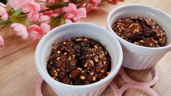 Sve sastojke stavite u blender i mutite dok ne dobijete kašu. Zatim sipajte u male keramičke posudice (najbolje one za sufle) i pecite 20 minuta na 180 °C. Kada je gotovo po želji servirajte sa voćem.