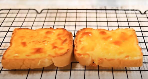 Stavite 4 kriške hleba na pleh za pečenje, koji ste obložili papirom za pečenje. U tiganj sipajte mleko, dodajte puter i šećer pa zagrevajte na srednjoj vatri da se sve otopi. Na kraju stavite čedar sir i mešajte da dobijete tečnu masu. Svako parče hleba premažite ovom mešavinom. Pecite 10 minuta na 180°C.