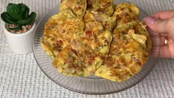 Umutite jaja i dodajte pavlaku, prosejano brašno sa sodom bikarbonom i prstohvat soli. Dobro sjedinite, pa dodajte seckani paradajz, šunku, sir, mladi luk i peršun. Dobro promešajte i kašikom vadite, pa sipajte u tiganj u kojem ste zagrejali malo ulja.