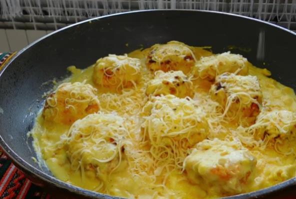 U istom tiganju (prethodno izvadite ćufte) rastopite mast, pa dodajte brašno, promešajte, pa sipajte mleko i pavlaku za kuvanje. Dodajte senf i promešajte, pa sipajte vodu ili bujon. Kada sos provri vratite ćufte i kuvajte još 7-8 minuta. Kada je gotovo izrendajte malo kačkavalja preko.