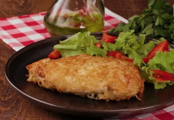 Da li neko može da odbije ručak kada kažete da je u ponudi pohovana piletina, krompir pire i neka salata. Belo meso i krompir su svima omiljene namirnice, a sada kada pohujete umesto prezli koristite rendani krompir. Iznenadićete se kada vidite kako je dobar ukus i jednostavna priprema. Ako ne volite ne morate da koristite sir ili koristite sir koji volite.