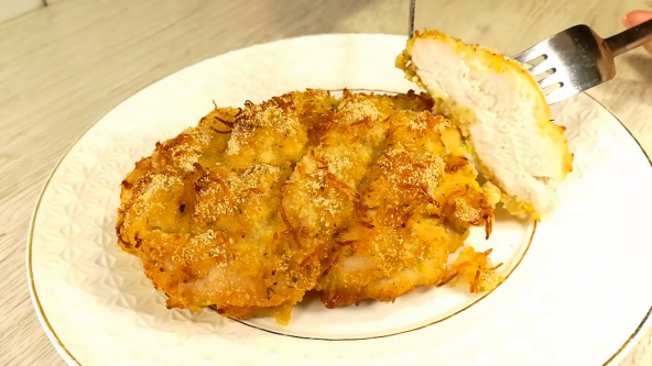 Filete zasecite (ali ne do kraja) po širini, pa po dužini da dobijete kvadratiće. U kefir dodajte so, biber, soja sos i senf pa promešajte. Filete poređajte u pleh, pa prelijte dobijenom mešavinom. Neka stoje tako minimum sat vremena. Prezle pomešajte sa rendanim kačkavaljem, dodajte kurkumu i začin za piletinu. Sada svako parče uvaljajte u ovu mešavinu sa obe strane, vodeći računa da mešavine bude i među prorezima. Ređajte tako uvaljanu piletinu na pleh i pecite u rerni na 180 stepeni pola sata.