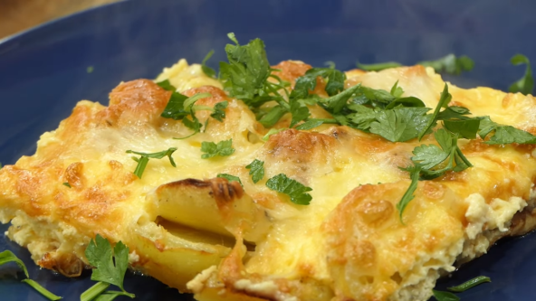Ako nemate ideju šta da pripremate za ručak, belo meso i krompir su uvek dobro rešenje. Pravi se slično kao musaka, samo što se za preliv koristi pavlaka za kuvanje umesto mleka. Ona je gušća, ukusnija i daje bolji šmek jelu. Na kraju pospite sirom koji će se istopiti, a to svi vole. Ovako jednostavan ručak koji se lako pravi možete da poslužite sa kupus salatom.