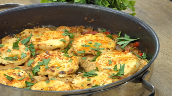 Piletinu ste pripremali na različite načine, ali na ovaj garantujemo da niste. Da bi meso bilo sočnije i ukusnije dinstajte ga u sosu od 4 vrste povrća (luk, paprike, paradajz i patlidžan). Piletina će upiti sve sokove i biti još lepša, a sir na vrhu daće joj posebnu draž.