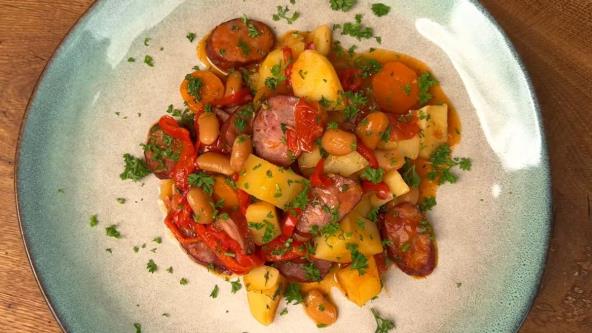 Kada nemate ideju šta da pripremite za ručak, ovo jelo može biti spas. Iskoristite sve od povrća što imate kod kuće, dodajte još i kobasice i pasulj iz konzerve i eto gurmanskog ručka. Jelo je izdašno pa će zasititi celu porodicu, a sigurno će im se svideti.