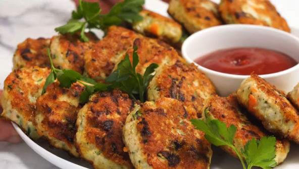 Pomešajte pileće mleveno meso, rendanu šargarepu i rendanu tikvicu koju ste prethodno ocedili. Zatim dodajte jaje, rendani tvrdi sir, prezle, sitno seckani peršun i posolite i pobiberite. Zatim malo pokvasite ruke i formirajte pljeskavice. Zagrejte kašiku ulja i ispržite pljeskavice, pa ređajte na ubrus.