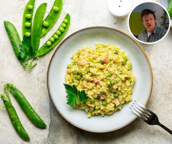 Ovaj jednostavni rižoto prema receptu poznatog kuvara Džejmija Olivera ne zahteva veštinu u kuhinju, a gotov je za manje od pola sata. Iskoristite grašak ukoliko ga imate u zamrzivaču, a ako niste ljubitelj ovog povrća uvek ga možete zameniti s onim što imate u tom trenutku od povrća.
