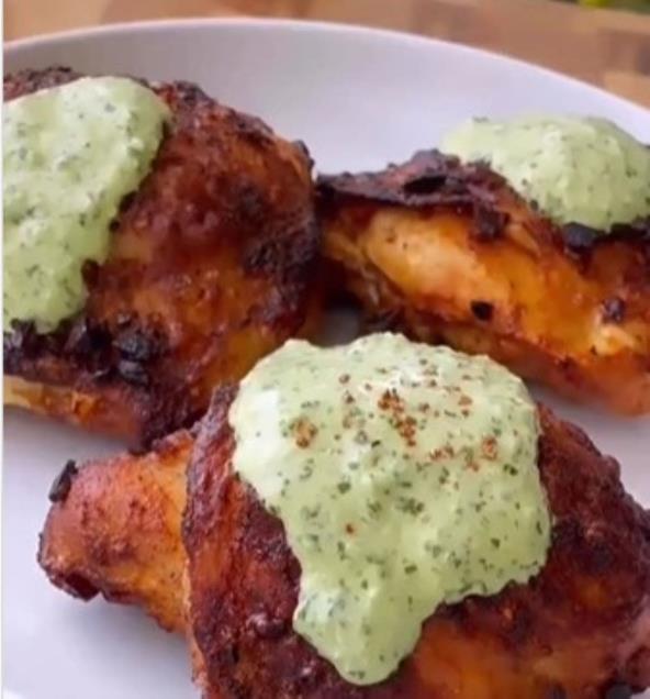 Stavite meso u posudu, pa dodajte sok od limete, mleveni beli luk, maslinovo ulje, začine i sve dobro sjedinite. Pokrijte aluminijumskom folijom i ostavite da se marinira nekih 2-3 sata. Izvadite batake iz frižidera 20 minuta pre pečenja, ali ih ostavite u marinadi. Nakon toga stavite u tepsiju i pecite na 220°C oko 30 minuta. U blender sipajte sve sastojke za sos, pa dobro usitnite. Zatim prelije batake i poslužite.