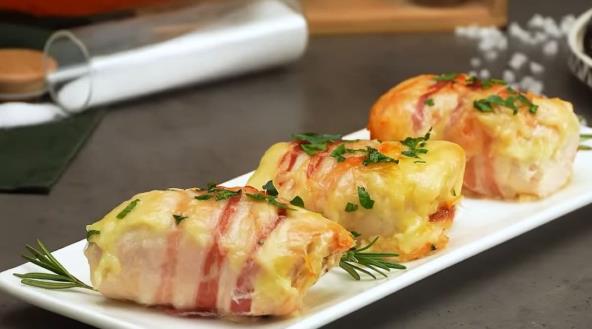 Jela sa piletinom niko ne odbija, a najčešće se sprema belo meso. Njega možete da pripremate u raznim slatko-kiselima umacima, sa kremastim sosovima, pohovano...A jedan od omiljenijih načina pripreme belog mesa je i rolovano. Danas vam predlažemo da za ručak napravite jednostavno belo meso punjeno krem sirom i paradajzom, a obmotano slaninom.Specijalitet kojem niko neće odoleti, a na kraju se posipa i sirom koji se razvlači.
