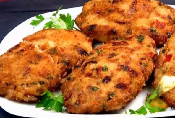 Na malo ulja propržite sitno seckani crni luk, pa dodajte seckanu ljutu papričicu. U mleveno meso dodajte luk i papričicu, kao i jaje, seckani peršun i dve kašike prezli. Posolite i pobiberite, pa lepo sjedinite. Uzmite meso u raširite ga u šaci, pa stavite veće parče sira. Meso obmotajte oko sira, pa uvaljajte u prezle. Tako radite dok ne utrošite sve sastojke. Ispržite u ulju. Prijatno!