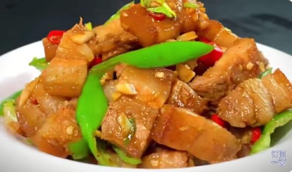 Uzmite ceo komad svinjskog paufleka i stavite ga u vreo tiganj (deo gde je masnoća) i kratko propržite (minut do dva). To će pomoću da se uklone dlačice koje su ostale i regulisaće neprijatan miris. Zatim meso potopite u vodu na nekoliko minuta. Zatim nožem još malo sastružite "prljavštinu" sa svinjske kože i isperite pod vodom. Isecite svinjski pauflek na kriške debljine 1 cm. Zatim dodajte marinirani tofu sir, biber, mešavinu začina, svetli i tamni sojin sos i sve rukama dobro utrljajte. Ostavite da se svinjski pauflek marinira nekih 10-20 minuta. Beli i mladi luk, đumbir i ljutu papriku sitno iseckajte i pomešajte sastojke. Ispržite svinjski pauflek u tiganju u kojem ste zagrejali malo ulja. Izvadite meso iz tiganja, pa kada se prohladi isecite na kockice. Zatim u istom tiganju propržite seckani luk, đumbir i papariku, pa vratite meso i dodajte krupno sečenu zelenu papriku. Promešajte i pržite još par minuta. Zatim posolite, sipajte sojin i sos od ostriga i opet dobro promešajte. Pržite još par minuta, a onda sipajte pola čaše vrele vode i pržite još 5 minuta, uz neprestano mešanje.