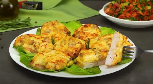 Recept za svinjske kotlete sa topljenim sirom i pečurkama: