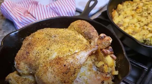 Recept za pečeno pile punjeno krutonima i kobasicama: