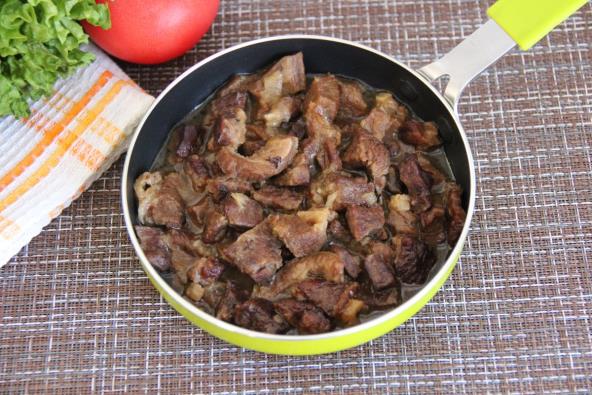 Kada meso postane rumeno, dodajte mu suvo belo vino. Pustite da provri, smanjite temperaturu i dinstajte meso ispod poklopca oko 40 minuta da omekša. Pripremite začin od sirćeta: beli luk sa solju i začinima sameljite, dodajte sirće i dobro promešajte. Posle 40 minuta u meso dodajte sirćetni začin i dobro promešajte.