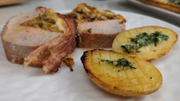 Recept za rolovano svinjsko meso punjeno pečurkama i sirom: