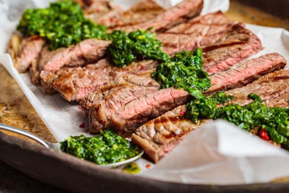Pre toga napravite sos od peršuna. Izblendirajte peršun, beli luk i origano. Prebacite mešavinu peršuna u srednju činiju i umešajte ulje, sirće, limunovu koricu i mlevenu crvenu papriku pa začinite solju. Sos pospite preko goveđih filea. Uživajte!