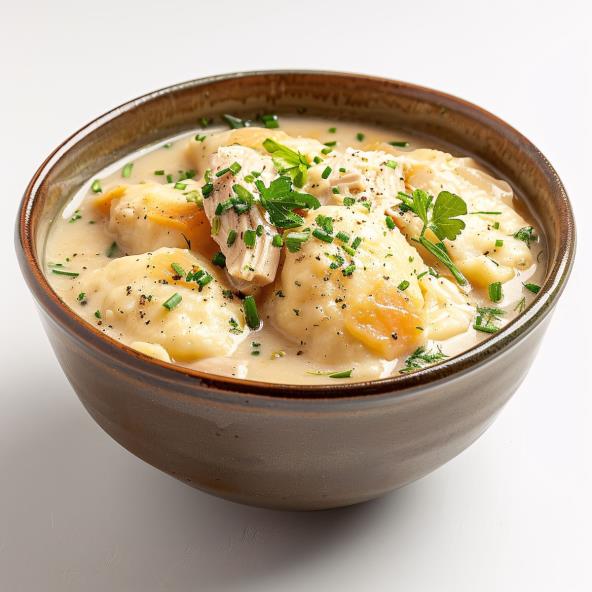 Da biste pripremili knedle, pomešajte brašno, peršun, šećer, so, prašak za pecivo, beli luk u prahu i biber u činiji. Sipajte mleko i otopljeni puter u mešavinu brašna, pa mešajte dok se ne formira mekana smesa koja se može zahvatiti kašikom. Nemojte preterano mešati. Skinite poklopac sa piletine i sosa i stavite testo za knedle na površinu sosa, kašiku po kašiku. Sos bi trebalo da još uvek ključa. Vratite poklopac na tiganj i ostavite knedle da se krčkaju 15 minuta. Servirajte toplo i uživajte!