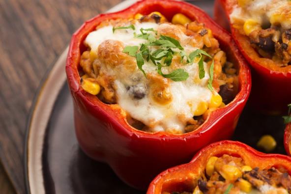 Kada je mleveno meso kuvano, podelite ga između paprika, puneći ih. Pospite ih po vrhu rendanim kačkavaljem i vratite u rernu na 10 minuta. Pre serviranja posipajte listovima bosiljka. Uživajte! Možda ćete želeti da napravite i rižoto sa mlevenim mesom,