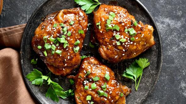 Uključite rernu na 200 stepeni C i pecite karabatake, 20-30 minuta okrećući ih na pola pečenja. Kada ih izvadite, prelijte prethodno napravljenim prelivom i pospite semenom susama i mladim lukom ili vlašcem. Uživajte. Možda ćete želeti da napravite i hrskave karabatake sa pirinčem.