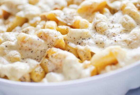 Kako biste napravili njoke zagrejte rernu na 220 C, i nauljite posudu za pečenje. U veliki lonac sa ključalom slanom vodom ubacite njoke. Izvadite ih čim isplivaju na površinu, ne više od 30 sekundi i dobro ocedite.