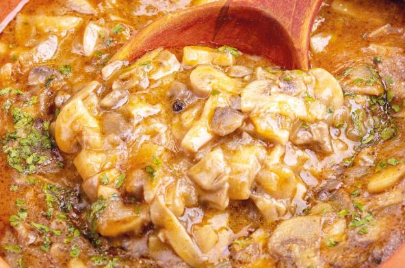 Kako biste napravili gulaš od vrganja, zagrejte tiganj i pokapajte maslinovo ulje. Crni i beli luk iseckajte što sitnije i ubacite ih u tiganj zajedno sa grubo iseckanim vrganjima. Dodajte kocku povrća, majčinu dušicu i rendanu šargarepu. Promešajte i pokrijte poklopcem, tek toliko da omekšaju pečurke.